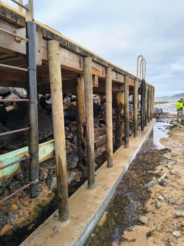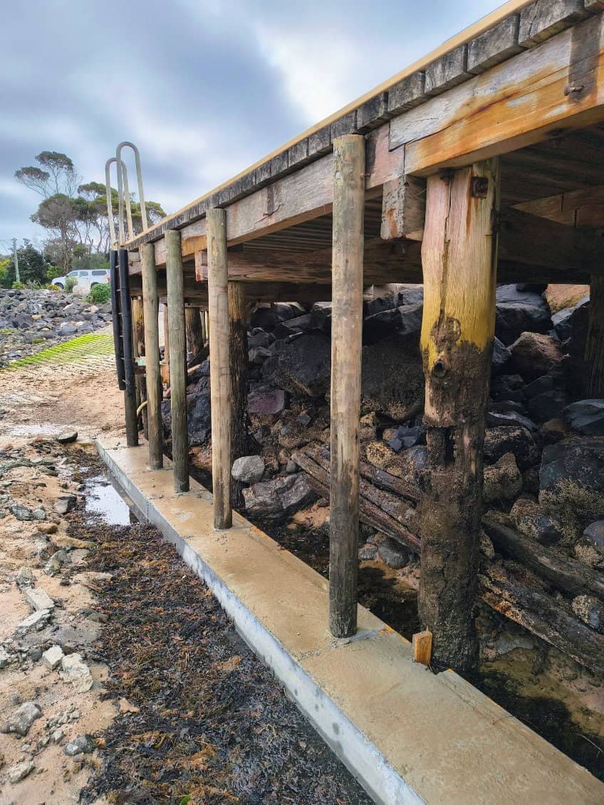 - Installing new support posts at the end of the jetty to extend the life of the structure.