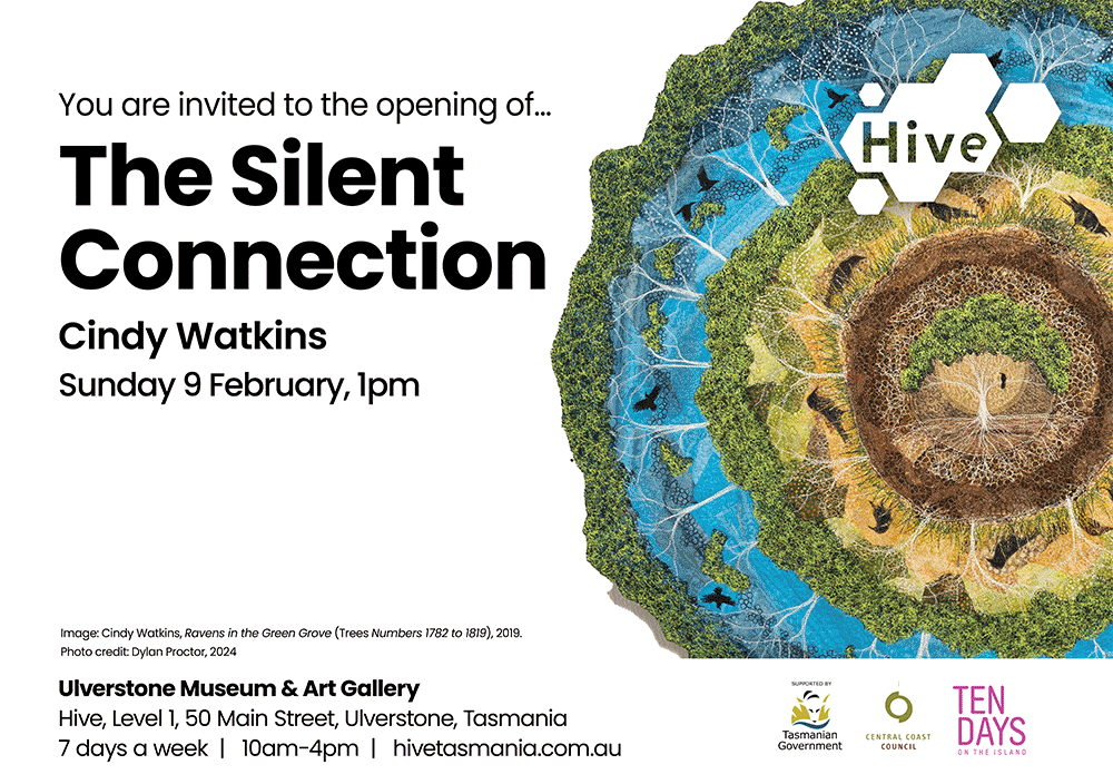 In this stunning exhibition Tasmanian textile artist Cindy Watkins uses silk and cotton as her paint and the sewing machine as her brush to celebrate the beauty and importance of trees while emphasising the need for their protection.